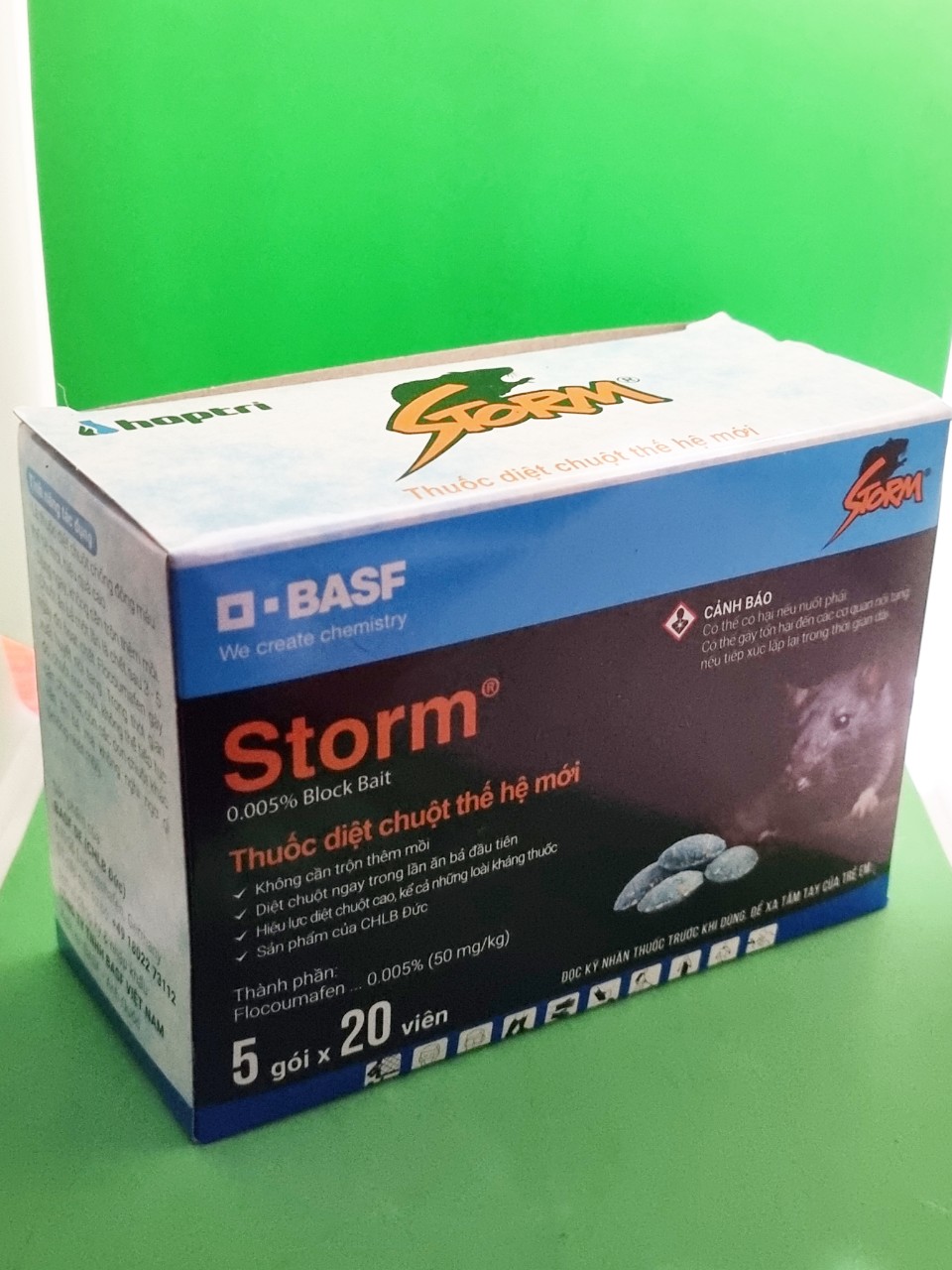 Hiện nay, thuốc diệt chuột Storm là sản phẩm bán chạy nhất trên thị trường do tác dụng diệt chuột đạt trên 90%. Thuốc diệt chuột Storm được sản xuất theo công nghệ hóa sinh, cách sử dụng dễ dàng, an toàn và giá cả phải chăng. Thuốc có màu xanh, dạng viên, hay còn gọi là “viên kẹo”